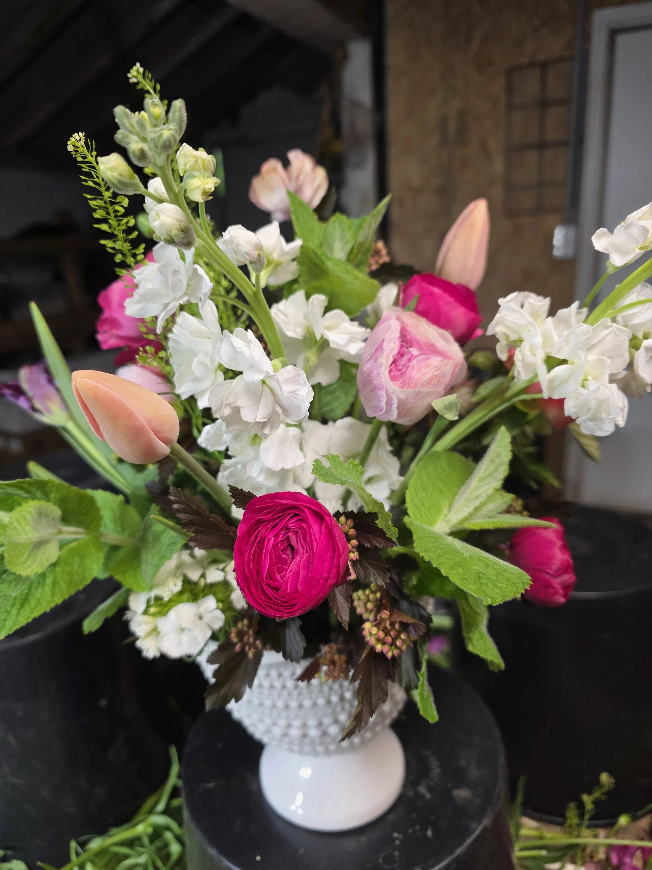 Show some love for your Mama on her special day with fresh local flowers! Our lovely hand-crafted bouquets will include fragrant and colorful early spring blooms from our farm to Mom’s door. You may choose to have your arrangement hand-wrapped in brown paper or styled in a vase. Deliveries will be made on Saturday, May 11. We do our best to accommodate special requests!